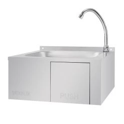 This completely hands free sink is the perfect solution for maintaining a hygienic operation. Operated by the knee, sink makes it easy to keep your hand clean as there’s no need to turn on any taps or press any buttons – significantly reducing the risk of cross contamination. In addition, as the sink only operates when the knee operated system is pressed, the amount of water dispensed is reduced, helping to save water and reduce your running costs. The sink itself is easy to clean and maintain.