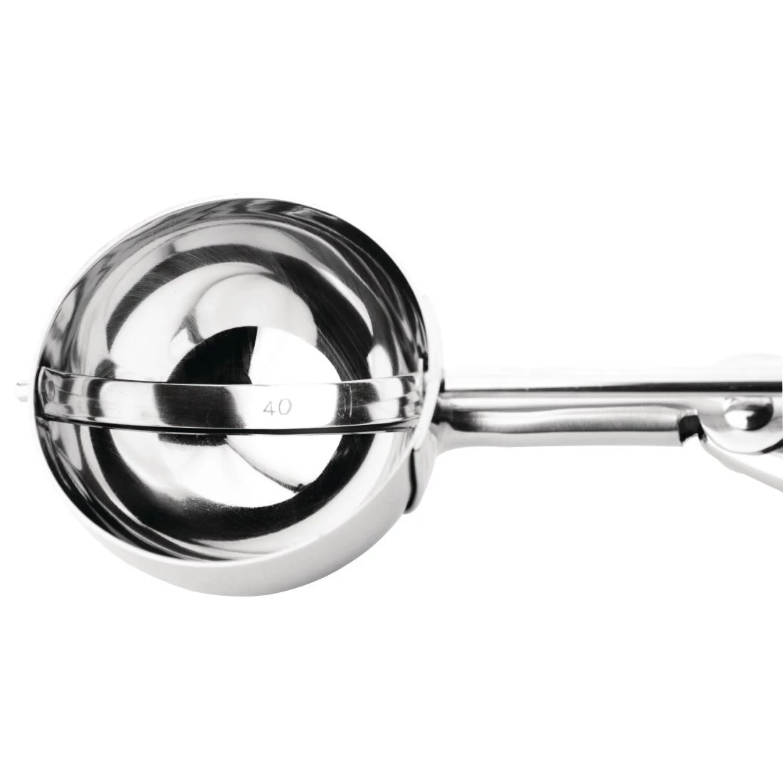Maximise your profits with the Vogue size 40 portioner. Made from robust stainless steel, the portioner carves into all manner of ingredients with ease, helping you control portion sizes with expert precision to reduce wastage and costs to your business. Boasting a spring-loaded handle, the tool is designed for optimal speed and efficiency, drastically reducing your serving times. Incredibly durable, the portioner is made to last, giving you excellent results for longer. The utensil is also extremely easy-to-clean, helping you keep it in fantastic condition. This scoop gives 40 portions per litre.