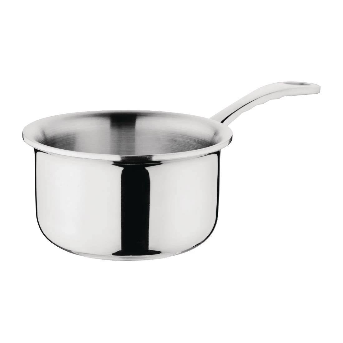 Part of the premium range from trusted brand Vogue, these pans feature and innovative layered design. An aluminium thermocore sits sandwiched between stainless steel walls which combined will provide even heat distribution without hotspots for great performance. This saucepan has a hardwearing mirror polished exterior with brushed finish interior. 90mm(W)X90mm(D)X55mm(H) and has a capacity of 0.33L.