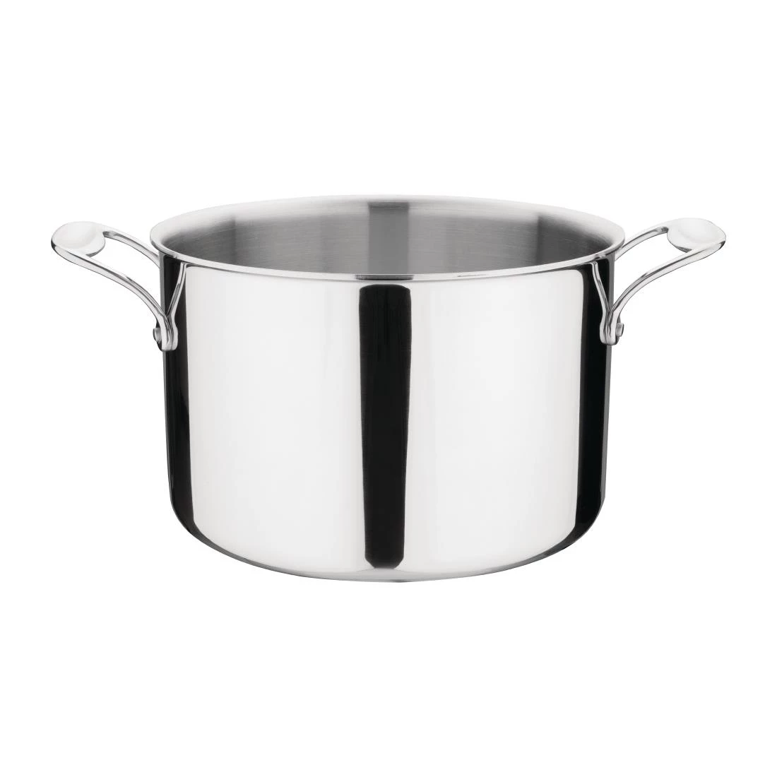 This Vogue Tri-Wall heavy duty stew pan has an aluminium thermocore that has been sandwiched between stainless steel walls for even heat distribution that eliminates hot-spots. Their versatility makes them ideal for all manner of catering tasks and can be used on all heat sources including induction.