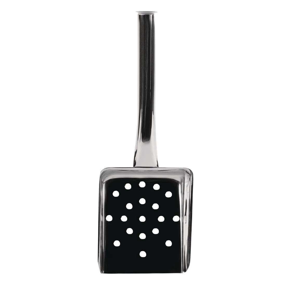 Serve chips safely and efficiently with the Vogue chip scoop. Featuring a tubular handle, the scoop remains cool to the touch when in use, ensuring the safety and comfort of you and your staff. Made with a perforated head, the scoop allows residue to easily drain away to ensure your chips are not soggy or too oily. Constructed from tough stainless steel, the scoop is also incredibly robust and hardwearing, staying in excellent working condition for longer. This handy utensil is ideal for use in cafeterias, busy restaurants and fast food establishments.