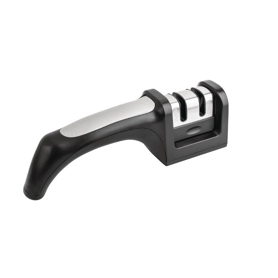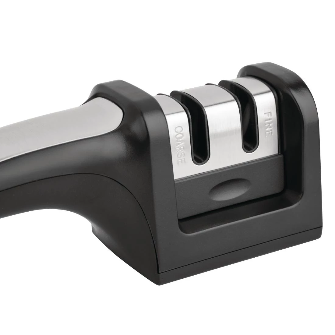 A great alternative to a traditional sharpening steel, this manual knife sharpener has high quality diamond and ceramic blades to ensure you achieve the best results possible. The two stage sharpening will help you to get a razor sharp blade enhancing your knives performance. This is achieved through the use of a coarse cutting blade that will start to sharpen the most dull of blades, then the fine cutting edge will expertly hone your blade and create a straight, even edge.